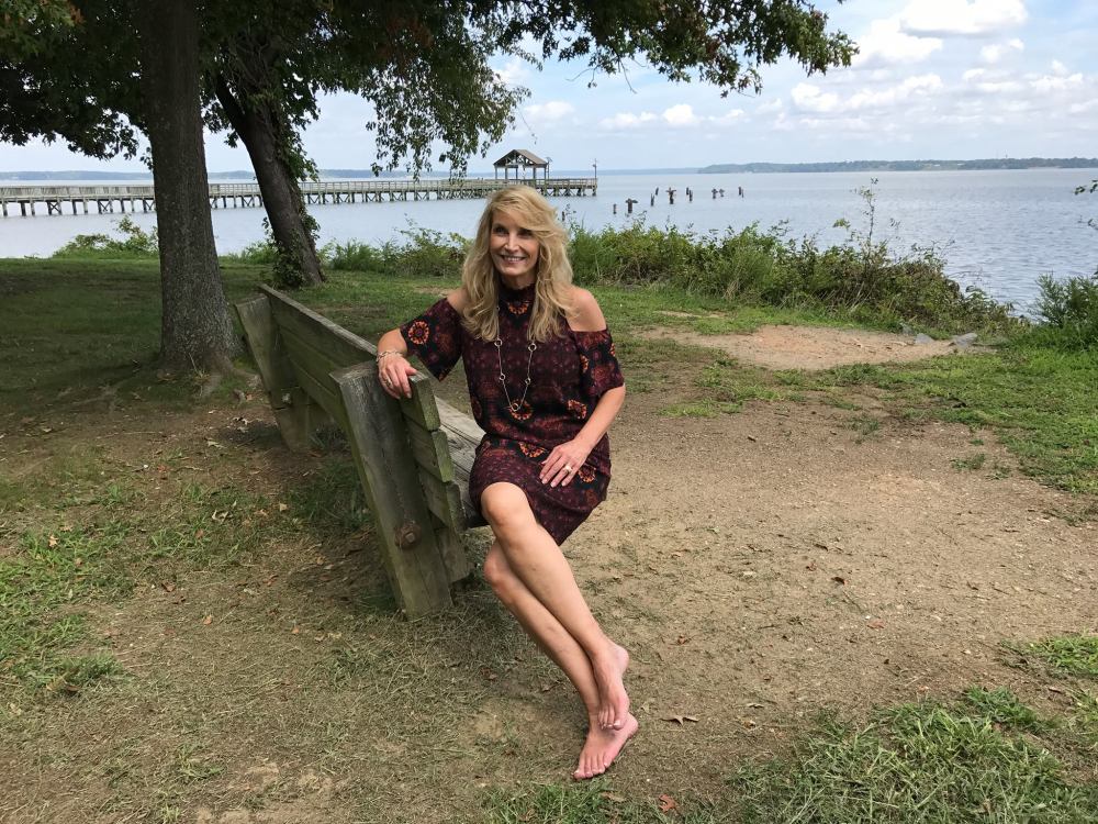 Linda is Also Wearing: Avon Stainless Steel Timeless Collection Drop Earrings, and Long Necklace and the Stainless Steel Eternal Collection Linked Bracelet along with the Avon Cushion Walk Lace-Up Gigi Flat.