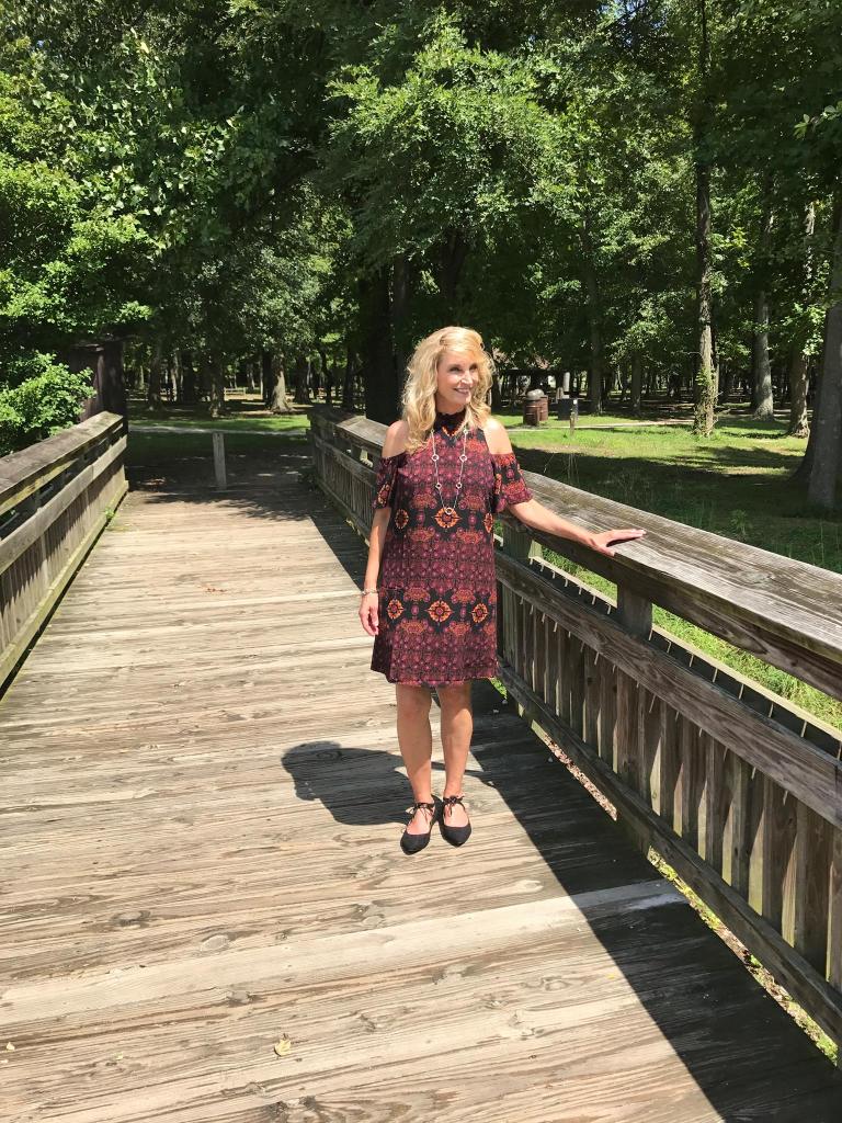Linda’s Fall Dress: Avon Open Shoulder Mock-Neck Dress $29.99