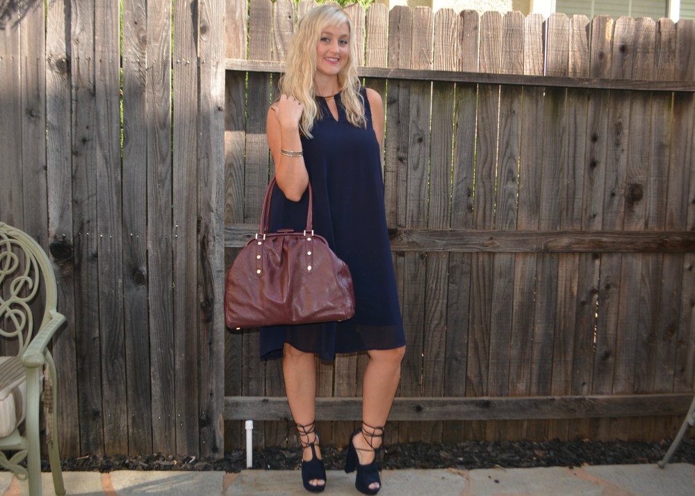 An easy fitting navy dress is never a bad idea. This Avon Zip-Back Double Layer Dress is one of those throw and go options. The keyhole neckline means you don’t need a necklace and the exposed zipper and split back add just enough style to stand out. I like this dress for fall because it’s navy, which is a great transition shade, and it’s super easy to wear, and will go with warm weather sandals, to booties, to cold weather boots!