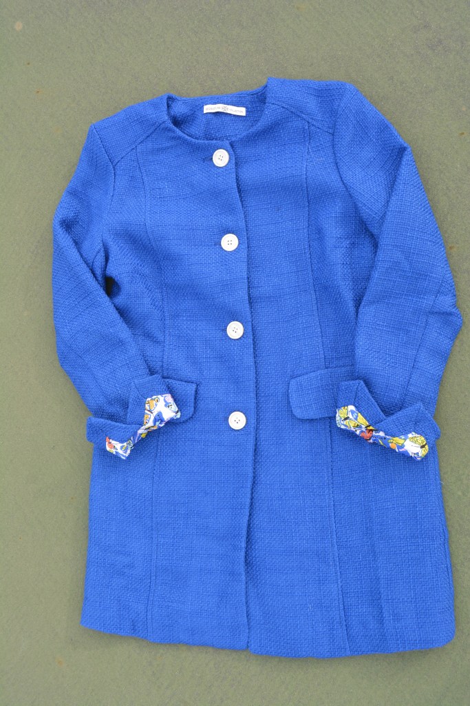 This is one of those pieces that will not only see good use because of its functionality but you will have it for years with its classic style and unique beautiful blue coloring. Just look at this stunning butterfly lining! I immediately thought of Easter in PA. As much as we want Easter to be springy and beautiful it usually is kinda cold so this would be the PERFECT topper!