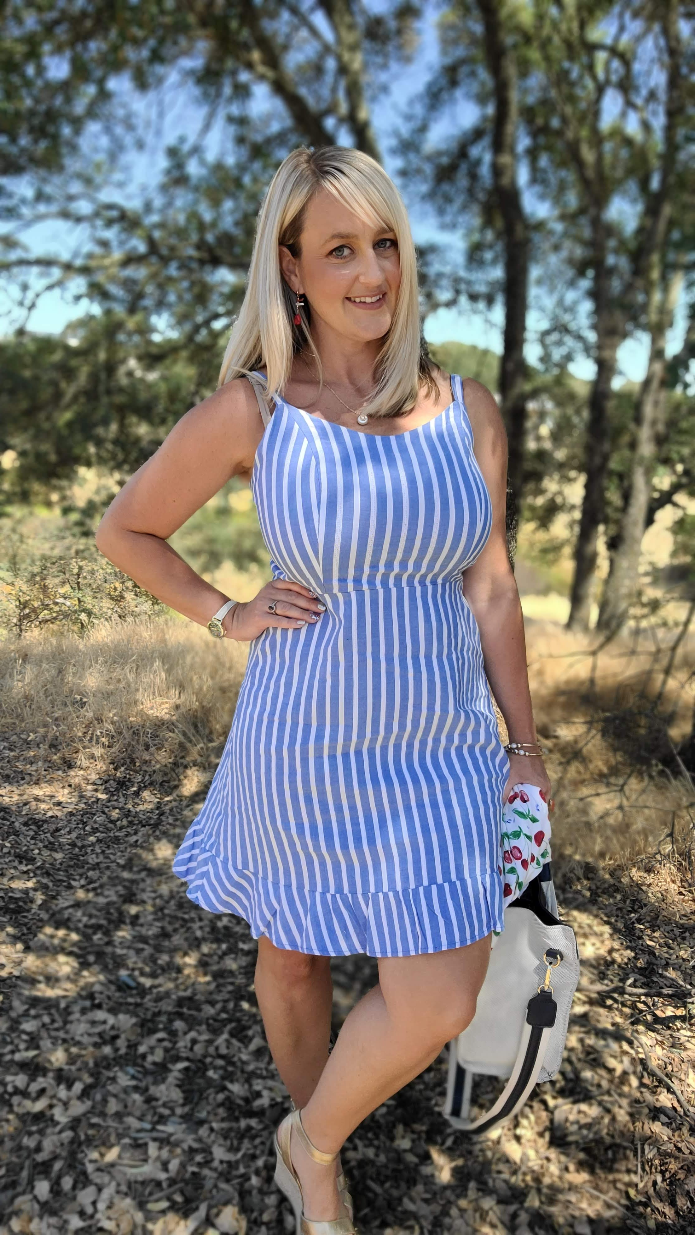 Week O’Nautical is back in port! And I’m sailing in with a striped sundress! Sundresses are my go to summer essential. They work for pretty much whatever summer throws at you and they’re comfortable to wear in the hot weather. For Week O’Nautical you know I had to have a striped one!