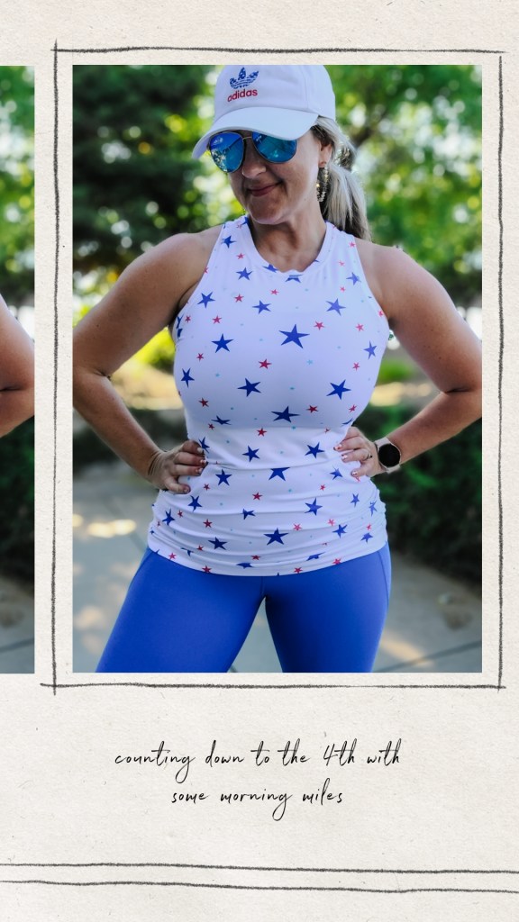 1. Starting my morning with a few miles walk enjoying the cooler morning temps and summer early daylight before work. Which means I’m sportimg my red white and blue fits for this activity! (Even my socks are ‘merica 🙃)