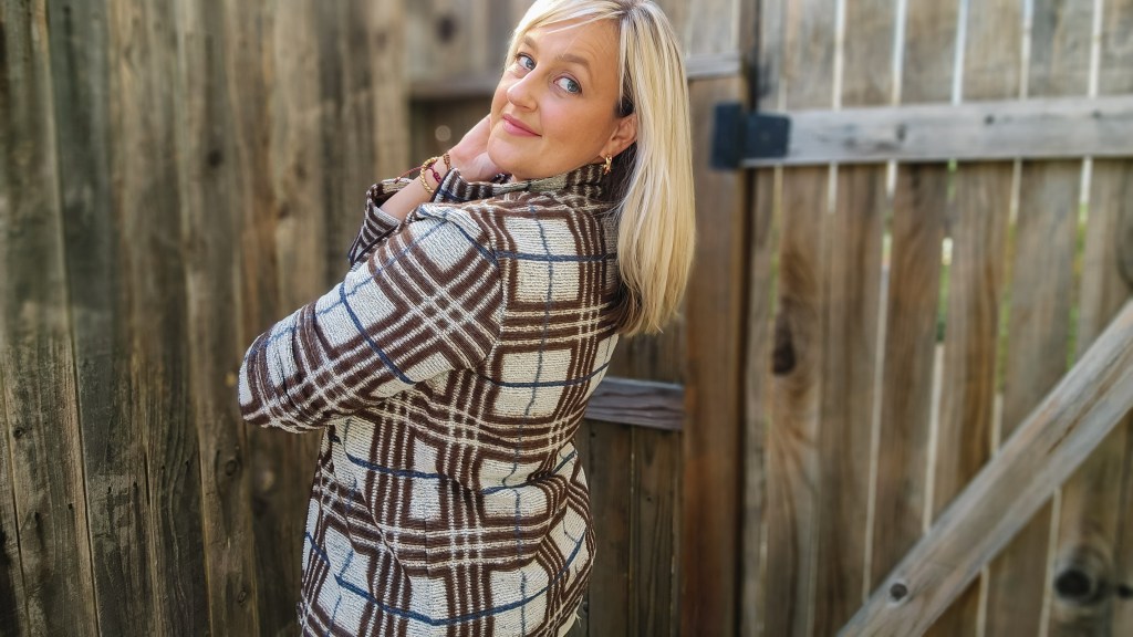 If you’re not wearing a plaid shacket are you even fall-ing? This one from Avon is a little more mature than the trendy ones but still on trend in a hot color this yr, brown! I did some pattern mixing and wore it with shorts for a wear now look. Sidenote: look how these browns just make my eyes look so blue!