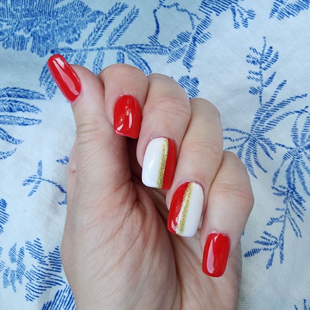 Red has been the hot color for a minute. It was fall’s hottest color and not stopping for summer. For my take, I’ve been vibing with red and white stripes. I had to do a fun bold mani in that same vibe.