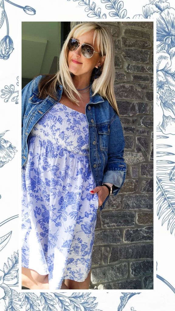 I’ve been seeing the chinoiserie trend ramping up not only in home decor but also in fashion, and I’m here for it! I’ve been pinning a ton of inspo so when I saw this easy sundress at Target I thought it was a great way to embrace the trend and be really practical for the summer. A lot falls into this “chinoiserie trend,” it really embraces all toile, chinoiserie, and delft — the key is to keep it in that classic blue and white print.